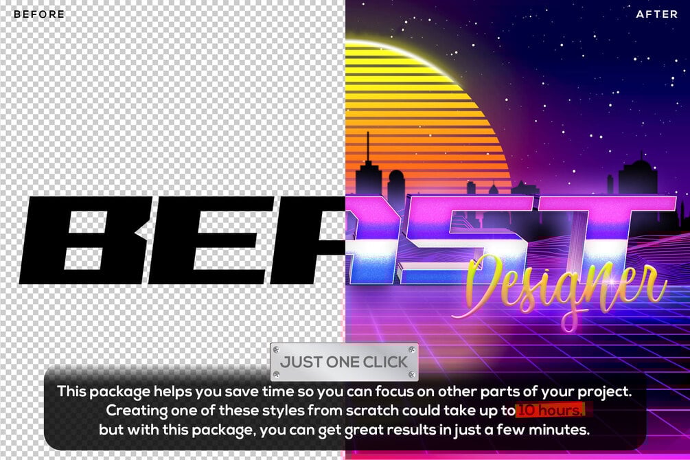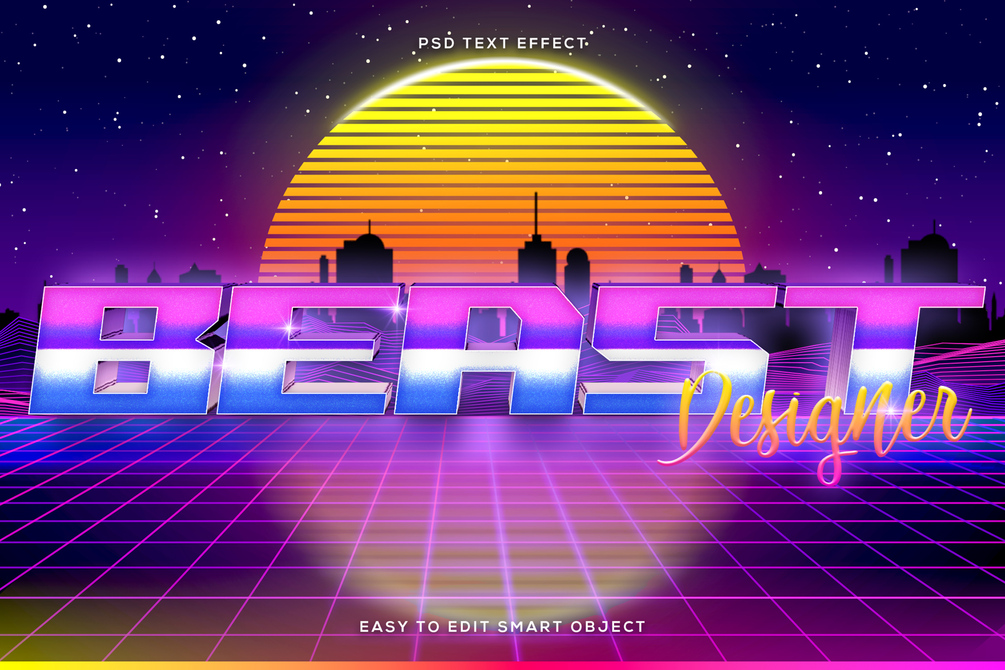 Add instant glow to your designs with this 80s Retrowave Synthwave Logo Mockup Text Effect.