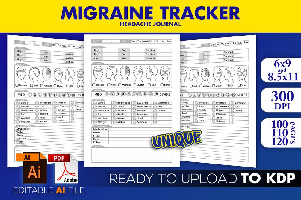 Migraine Tracker Headache Logbook | KDP Interior Template Ready to Upload