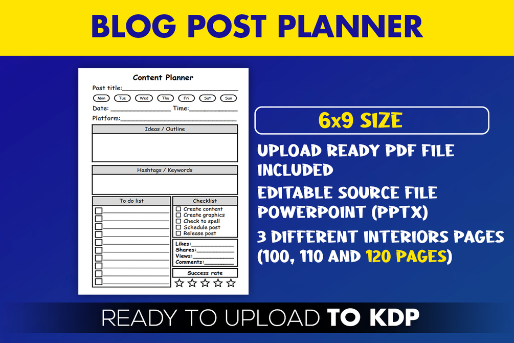 Blog Post Planner Content Creator | KDP Interior Template Ready to Upload
